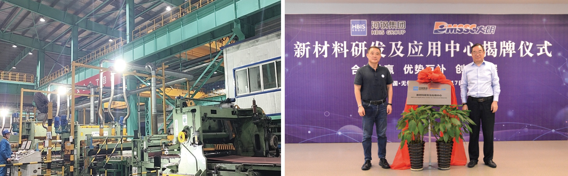 2020年9月,河鋼集團(tuán)與大明集團(tuán)聯(lián)合成立“新材料研發(fā)及應(yīng)用中心”,《熱軋免調(diào)質(zhì)耐磨鋼的推廣及應(yīng)用》已作為研發(fā)中心成立后的頭一個項目展開工作。從2006年起,大明國際從歐美引進(jìn)FIMI、NOVA、VIGANO等世界尖的高強(qiáng)和超高強(qiáng)鋼開平生產(chǎn)線。該系列生產(chǎn)線擁有多個輥包,可以進(jìn)行初、粗、精三個道次聯(lián)動矯直,能夠?qū)η?qiáng)度在1300Mpa的產(chǎn)品進(jìn)行在線矯直、開平,充分釋放應(yīng)力。同時,通過對加工過程鋼板表面溫度變化與參數(shù)調(diào)整進(jìn)行有機(jī)結(jié)合,終成品率由原先的60%提升到了90%以上,有效解決了免調(diào)質(zhì)耐磨鋼的加工問題。