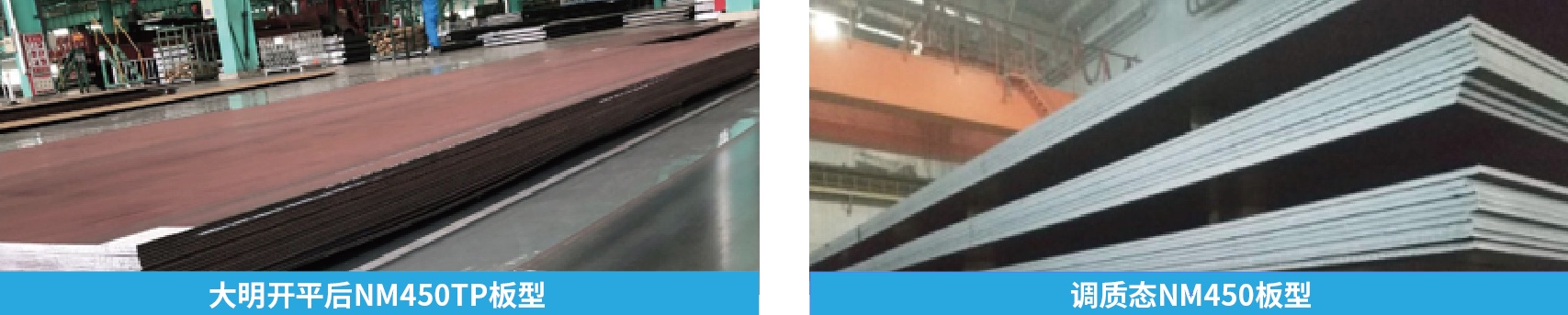 NM400TP、NM450TP 應(yīng)用于自卸車、泵車、耐磨廂體鋼的底板、前后廂板、側(cè)廂板和結(jié)構(gòu)件等 |