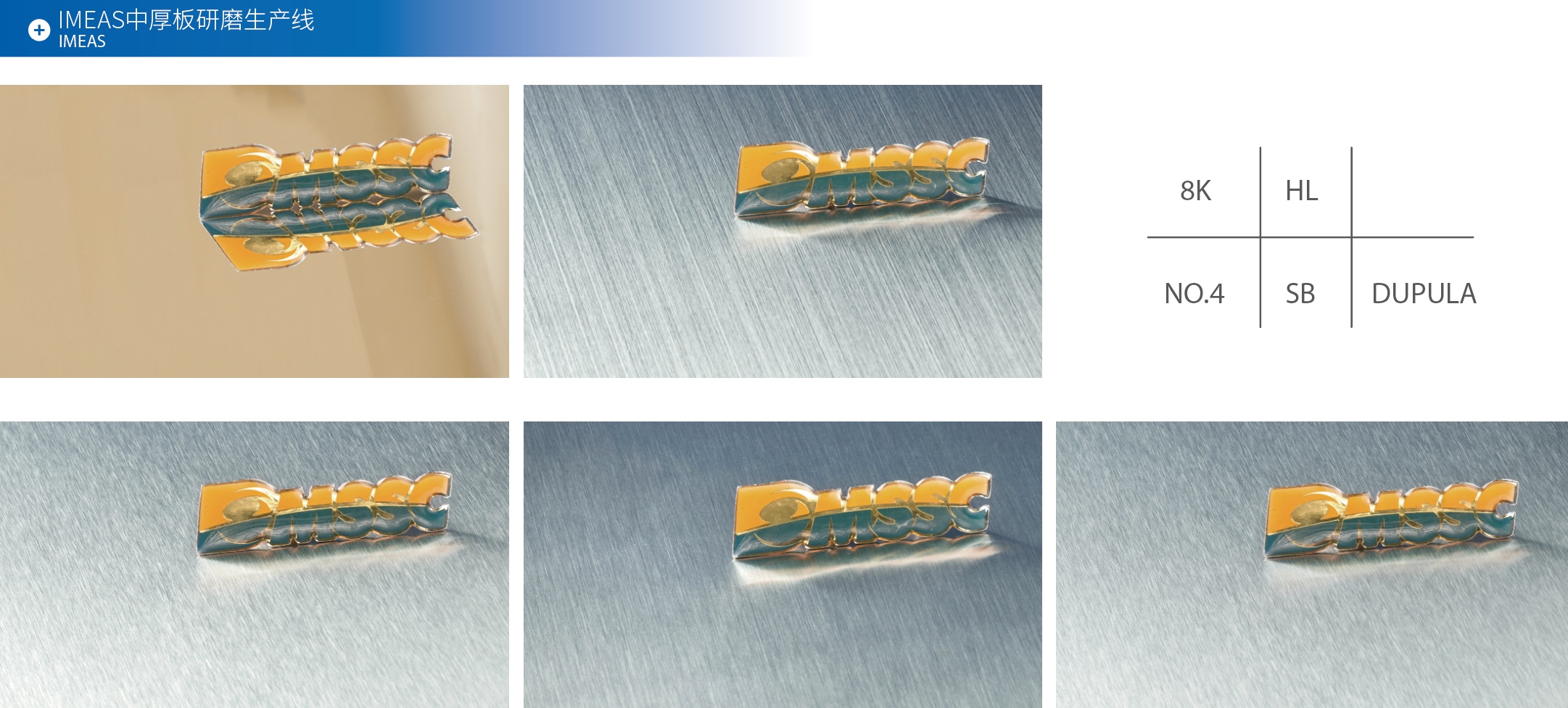 大明表面研磨平臺有整卷油性磨砂、平板干性磨砂、平板油性磨砂等工藝,主要生產(chǎn)NO.4、HL、8K、SB風格表面不銹鋼板。該平臺已經(jīng)實現(xiàn)從冷軋到熱軋、從薄板到中厚板、從平板到卷材、從干磨到油性磨砂的全范圍加工能力。